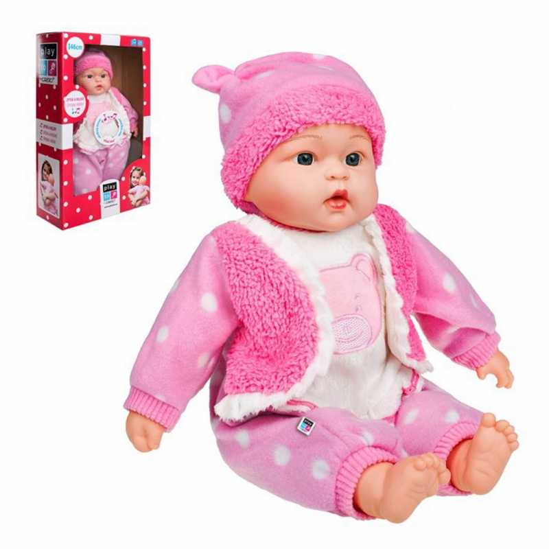 Detská bábika PlayTo. Hlava, ruky a nohy sú vyrobené z gumy, telíčko potom z mäkkého materiálu. Bábika má milú tváričku, ktorá vyzerá ako naozajstné bábätko. Dĺžka bábiky je 46 cm.
