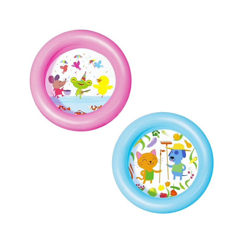 Detský bazén 61cm. Skladá sa z dvoch nafukovacích prstencov s uzáverom chráneným proti náhodnému úniku vzduchu. Neveľké rozmery umožňujú zobrať ho na ľubovoľné miesto, na pláž, trávnik alebo na výlet. Výborne poslúži aj ako vanička na kúpanie bábätka.