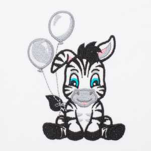 Celorozopínacie bavlnené body New Baby Zebra exclusive pre bábätká. Body je ozdobené vyšitým obrázkom roztomilej zebry a spodná časť je celopotlačená pruhmi. Obrázok je podlepený látkou. Okolo krčku, nožičiek a ručičiek má sivé lemovanie. Moderné bočné zapínanie na ramienku a medzi nožičkami.
