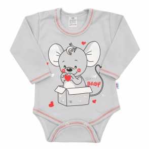 Dojčenské body s dlhým rukávom New Baby Mouse sivé