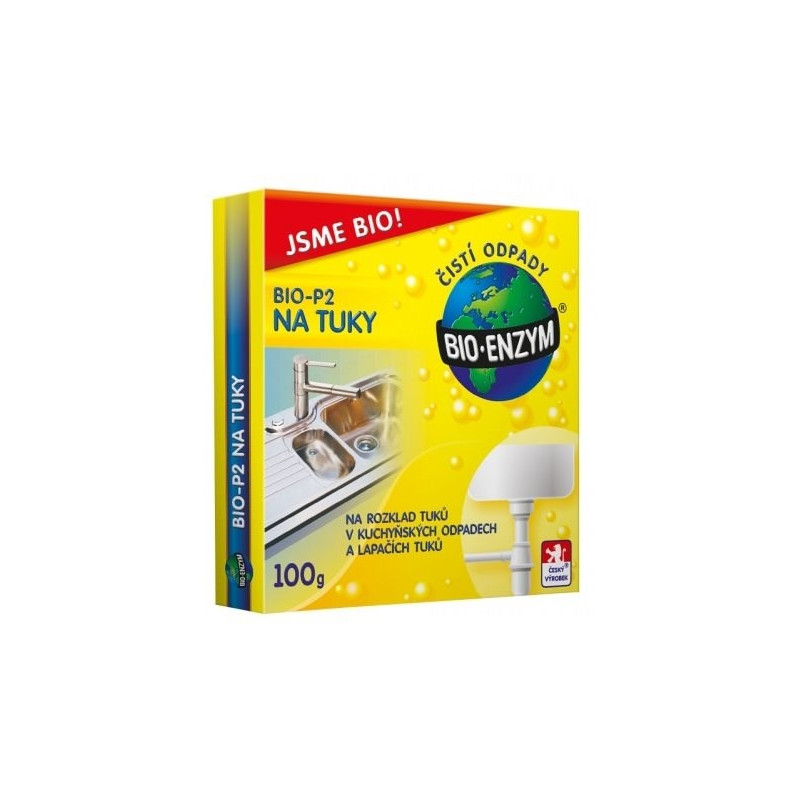Zabráňte usadzovaniu tukov a upchatiu odpadových systémov za pomoci aktivátora tukov BIO-P2. Biologický prípravok na báze bioenzýmov tuky v odpadovom systéme rozkladá na organické látky, ktoré už nemajú nevhodné vlastnosti tukov. Vďaka tomu nedochádza k ich usadzovaniu, zrážanie na vnútorných stranách odpadových rúr a nedochádza k upchatiu systému. Prípravok tiež výrazne obmedzuje zápach. Balenie obsahuje 100 g aktivátora tukov BIO-P2.