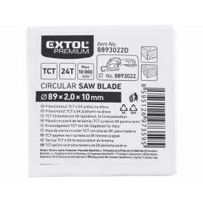 průměr: 89mm, tloušťka řezu: 1,0mm, průměr díry: 10mm, počet zubů: 24, Max. otáčky 10000minˉ¹, pro 8893022