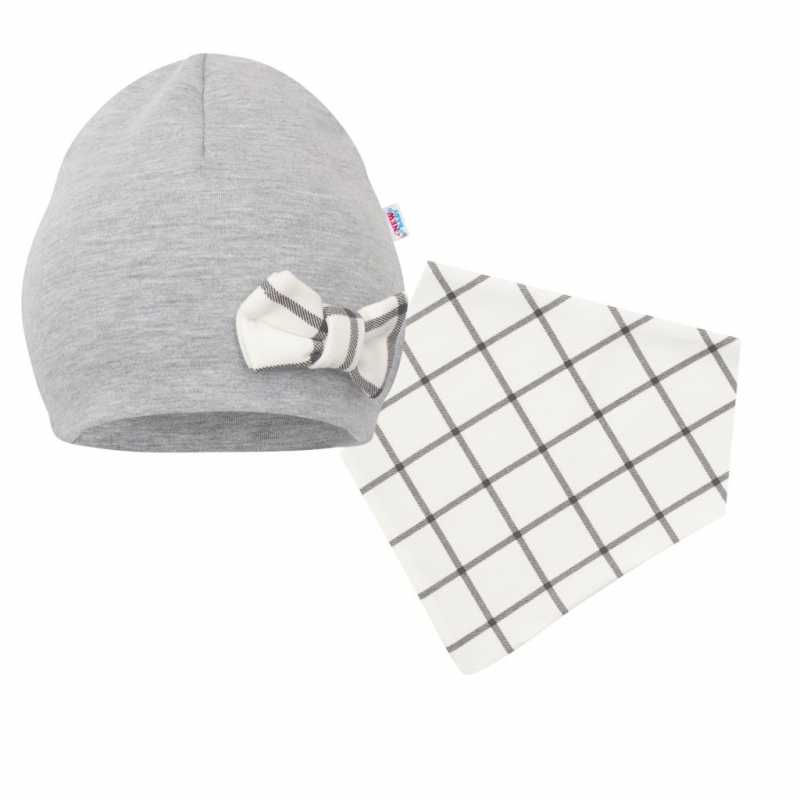 Dívčí 2-dílný set New Baby Missy. Set se skládá z čepičky a šátku na krk. Čepička je zdobená roztomilou mašličkou a je ušita z dvojité látky, a tím jsou více chráněna ouška před větrem. Šátek na krk je oboustranný je možné zapnutí do 2 velikostí. Úžasný, kvalitní a velmi praktický doplněk pro jaro i podzim.
