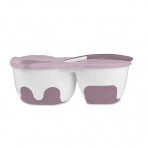 Dětská dvoukomorová miska se lžičkou Baby Ono růžová 200 a 150 ml