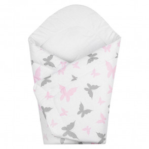 Dětská zavinovačka New Baby. Zavinovačku zdobí motýli. Zapínání na suchý zip. Rozměry cca 75x75 cm. Složení: povlak 100% bavlna, výplň 100% polyester. Umístění vzoru na zavinovačce se z důvodu strojní výroby mírně liší.
