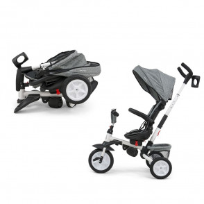 Dětská šlapací tříkolka 6v1 Milly Mally Stanley je typickým příkladem produktů GROW UP – roste zároveň s dítětem. Je vyrobena z kvalitních a odolných materiálů. Má moderní konstrukci, pohodlné a ergonomicky tvarované sedátko, které je otočné o 360 stupňů, což umožní dítěti cestovat ve směru nebo proti směru jízdy. O pohodlí a bezpečí během jízdy se starají bariérky, tříbodové bezpečnostní pásy, pohodlné stoupačky nebo gumová kola, která skvěle absorbují narázy a poskytují dobrou přilnavost. Tříkolku může ovládat jak dítě, tak i rodič pomocí nastavitelné rukojeti pro tlačení. Po odebrání vodicí tyče, sklápěcí stříšky, která chrání před sluncem nebo ostatních komponentů bude sloužit jako tříkolka. Tříkolku lze používat i jako alternativu golfového kočárku. Pro uložení hraček nebo potřeb pro dítě je zde praktický úložný košík.