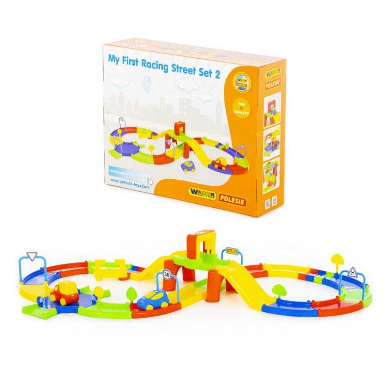 Herný komplex je prezentovaný vo forme svetlej pretekárskej dráhy. Všetky prvky majú zaoblený tvar dielov a sú vyrobené z vysoko kvalitných materiálov, vďaka čomu je hračka maximálne bezpečná.