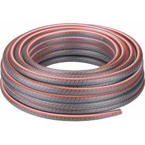 štvorvrstvová flexibilná hadica z mäkčeného PVC zosilnená dvojitým štrikovaným opletom z vysokopevnostného polyesterového vlákna zabraňujúceho prekrúcaniu a zalamovaniu hadice,