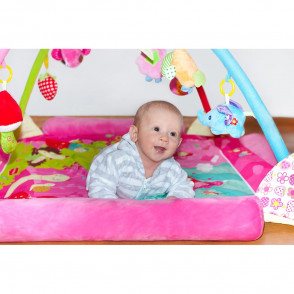 Príjemný a mäkký materiál umožňuje pohodlné ležanie na brušku alebo chrbte a umožňuje slobodu pohybu Vášho dieťaťa. Bábätko tak môže získať bezpečný útulnejší priestor a motivuje na dvíhanie sa dieťatka. Hračky je možné z hrazdičky ľahko zložiť.
