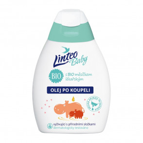 Detský olej po kúpeli Linteo Baby. Obsahuje zmes extraktov z BIO nechtíka lekárskeho a ďalších prírodných zložiek ako sú oleje pupalky, vínnej révy či mandľového oleja, ochraňuje, vyživuje a regeneruje citlivú detskú pokožku a chráni ju pred vonkajšími vplyvmi. Zloženie olejov bolo navrhnuté tak, aby bola zachovaná prirodzená vlastná tvorba ochrannej vrstvy pokožky. Podporuje znižovanie vzniku rizika alergií, ekzému a lupienky. Nezanecháva mastný povrch a ľahko sa vtiera do pokožky. Striktne sme vylúčili: syntetické PEG emulgátory, parabény, farbivá a parfumy, ktoré sa nezlučujú s parametrami detskej prírodnej kozmetiky. Obsah 250 ml.