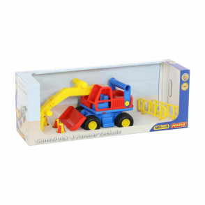 Bager ConsTruck s gumenými pneumatikami, všetky časti sú pohyblivé s možnosťou mechanickej manipulácie. Súčasťou balenia sú aj 4 kužele a 2ks cestné zábrany. Hračka je certifikovaná pre deti od 1 roku veku od renomovanej značky Wader quality toys. Farebné kombinácie konzultujte podľa aktuálneho stavu na sklade.