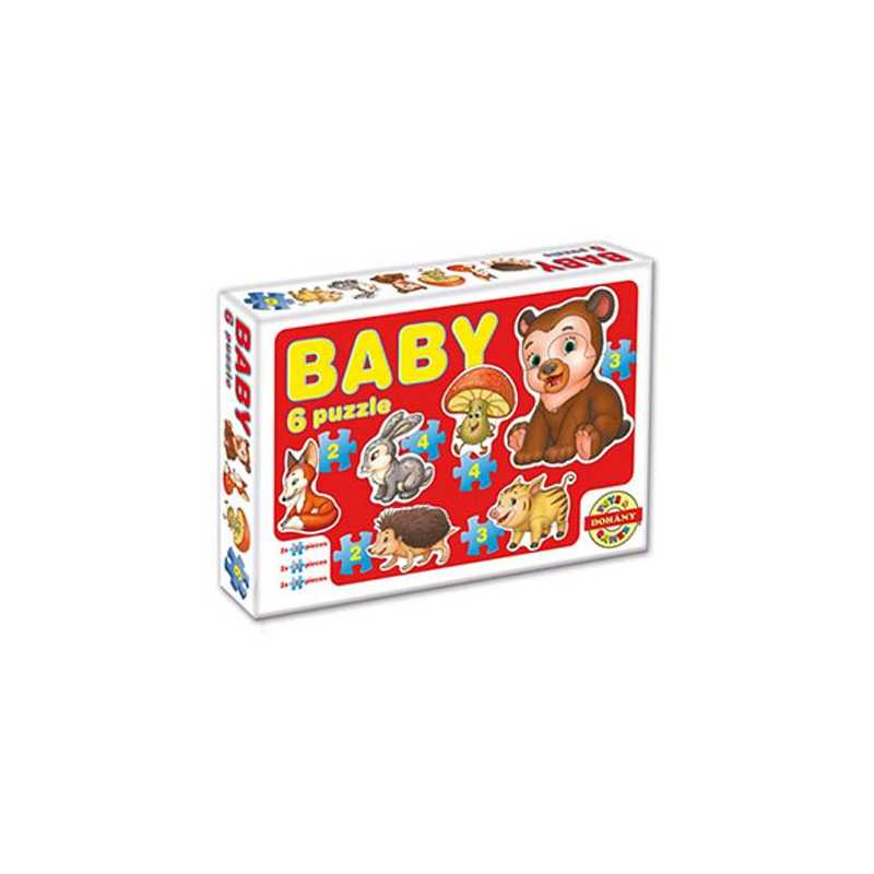 Farebné Baby Puzzle má veľmi výrazné farby, jednoduchý dizajn a veľké dieliky. Balenie má 6 obrázkov, ktoré sa skladajú z 2-3-4 častí. Vhodné pre deti od 3 rokov. Rozmer obrázkov cca 16x17 cm.