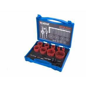 19(3/4")-22(7/8")-29(1 1/8")-35(1 3/8")-38(1 1/2")-44(1 3/4")-51(2")-57(2 1/4")-64(2 1/2")mm, 2x unášač so strediacim vrtákom, závitový adaptér, podložka, imbusový kľúč, kufor