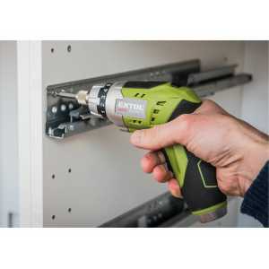 Praktický skrutkovač určený pre uťahovanie a povoľovanie skrutiek a matíc. Pri použití vrtákov so šesťhrannou stopkou môžete aj vŕtať. Vďaka jednoduchému nastaveniu momentov pri uťahovaní už nikdy nepoškodíte skrutky či závity a s otočnou rukoväťou sa dostanete aj do menej prístupných miest. Aretácia vretena umožňuje použiť sktrutkovač aj po vybití akumulátora.