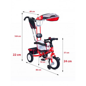 Krásna detská šliapací trojkolka Toyz Derby. Je vyrobená z kvalitných a odolných materiálov a je ideálna na prechádzky. Trojkolku môže ovládať ak dieťa, tak aj rodič pomocou rukoväte pre tlačenie. Pohodlie počas jazdy zaistí opierka hlavy, pohodlné sedadlo. Pre uloženie hračiek alebo potrieb pre dieťa, je tu úložný košík na zadnej strane trojkolky a na riadidlách je zvonček. Krásna strieška ochráni pred slniečkom. Určená pre deti vo veku 3-5 rokov. Max. zaťaženie je 25 kg.